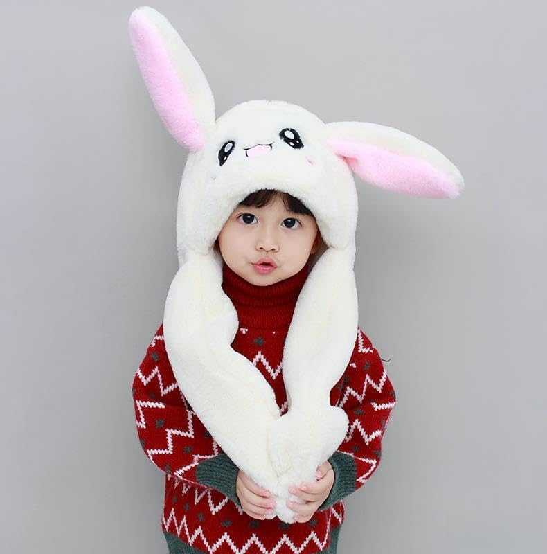 Rabbit ear hat made of soft plush material that is comfortable to your skin .